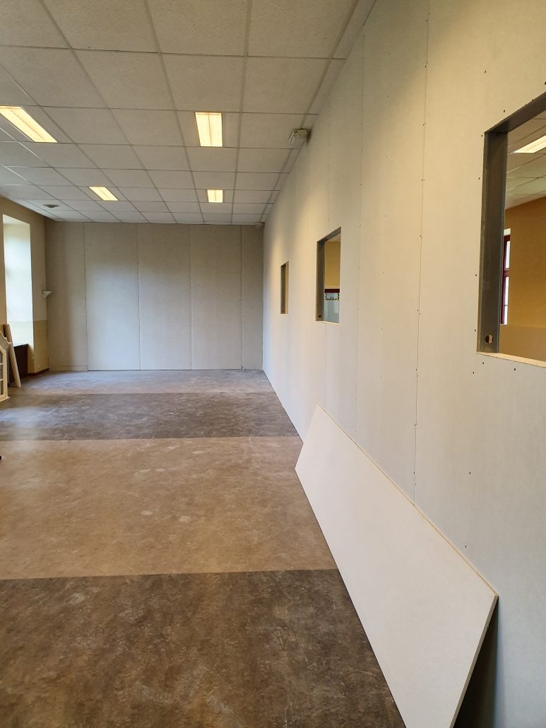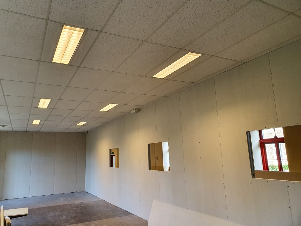 Voor een kinderdagverblijf in het oude Rolduc gebouw in Kerkrade hebben wij nieuwe scheidingswanden mogen plaatsen. Dit is er als volgt uit komen te zien!
